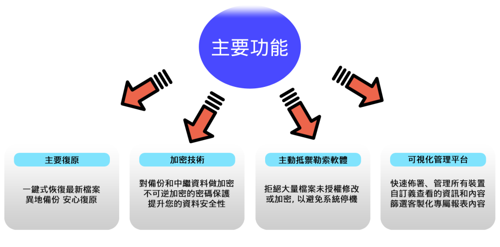 Acronis 提供整合式備援解決方案,結合雲端備份、災難復原,實現全方位的數據保護,並支援高速還原,確保關鍵業務不中斷,適用企業多樣化場景,捍衛企業資料安全的最佳首選。